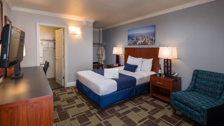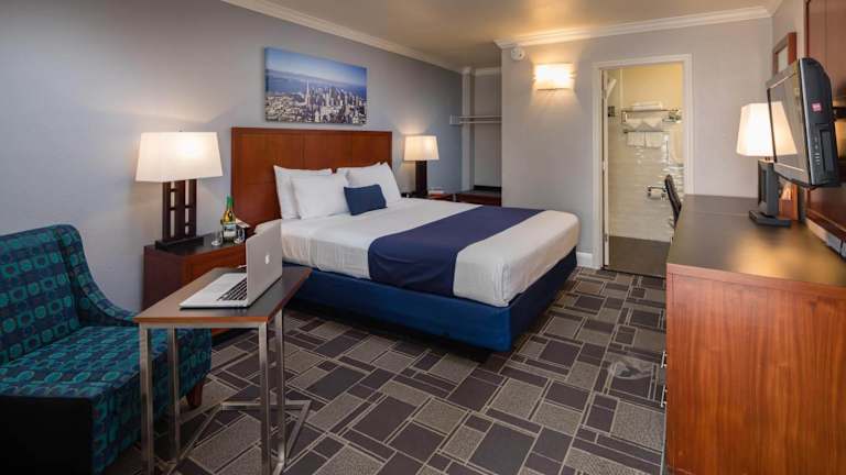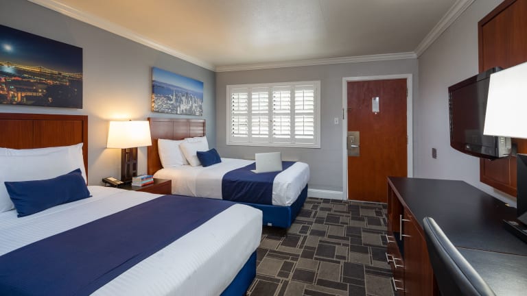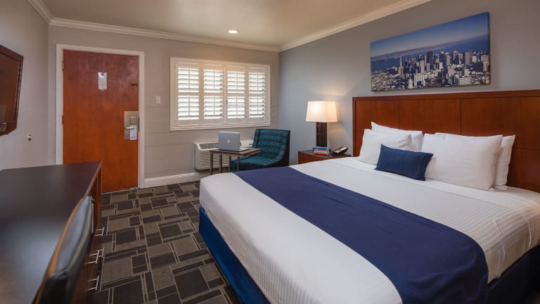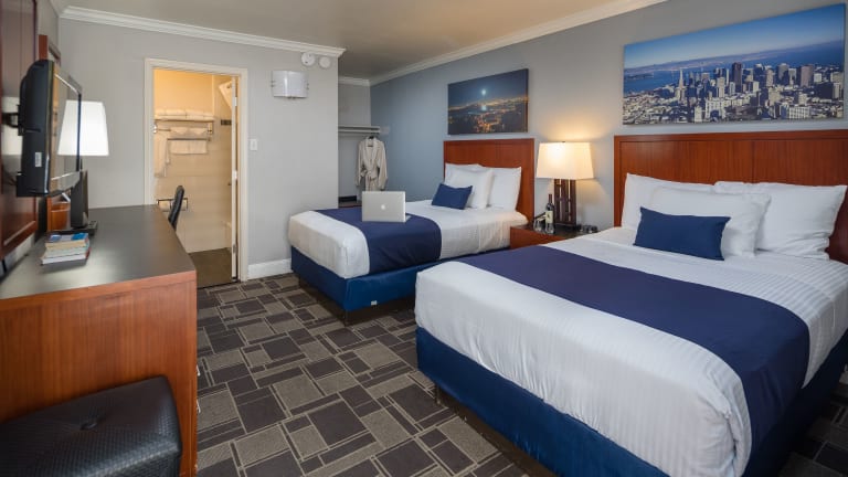 Die Zimmer im Bay Bridge Inn San Francisco sind komfortabel eingerichtet und verfügen über Annehmlichkeiten wie kostenloses WLAN, einen Flachbild-TV und einen Schreibtisch mit einem Stuhl. Kostenlose Ortsgespräche sind ebenfalls inbegriffen.