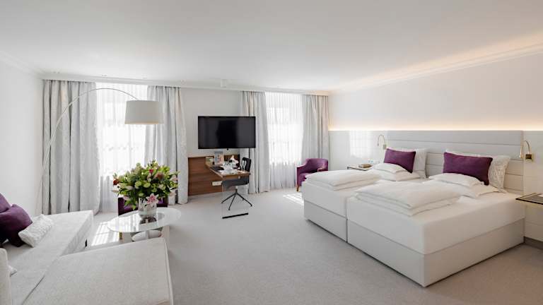 Große Kulisse - innen wie außen! Die 104 großzügig und individuell gestalteten Zimmer des Hotels Bayerischer Hof geben Ihnen Raum zum Ankommen, zum Entspannen, zum Leben. Die südseitigen Gästezimmer, Junior Suiten und Suiten bieten unseren Gästen einen überwältigenden Seeblick