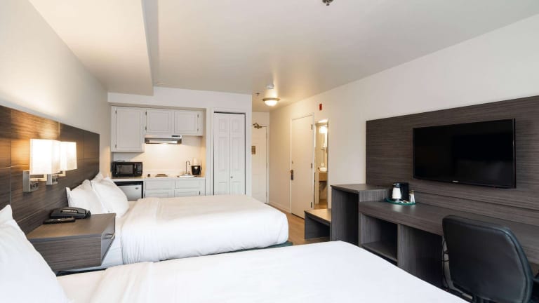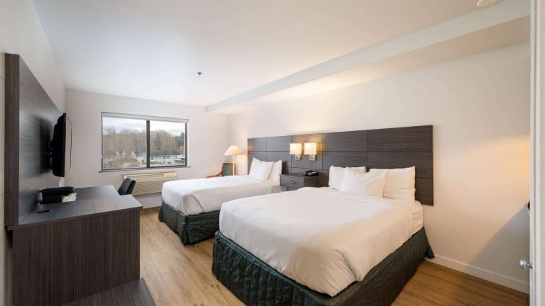 Das Baymont Inn & Suites by Wyndham in Bellingham ist ein komfortables Hotel, das sich nur 3,2 km von der Innenstadt entfernt befindet. Mit einem Außenpool, einem Innen-Whirlpool und kostenfreiem WLAN bietet das Hotel eine angenehme Unterkunft für Reisende. Die Zimmer sind gut ausgestattet und verfügen über Kabel-TV, eine Kaffeemaschine und einen Haartrockner. Ein kontinentales Frühstück wird täglich angeboten und es gibt auch Wäschemöglichkeiten und kostenlose Zeitungen. Die Lage des Hotels ist ideal, da es nur 8 km von der Western Washington University und dem Flughafen Bellingham entfernt liegt.