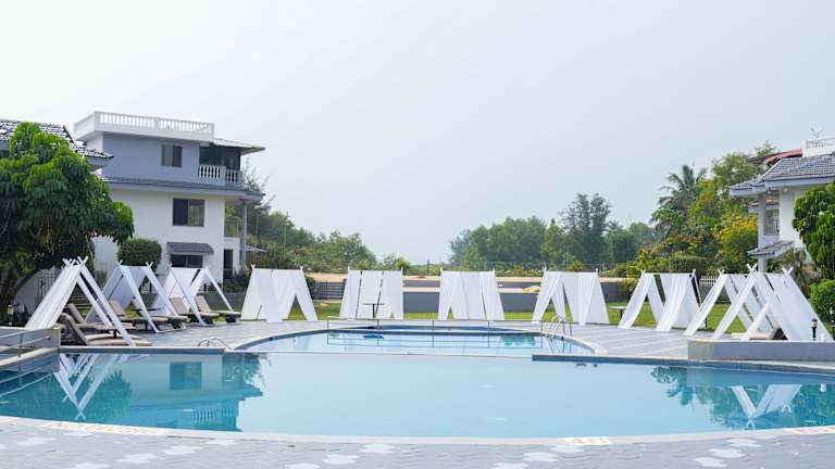 Das Resort bietet eine Vielzahl von Freizeiteinrichtungen, um den Gästen einen unvergesslichen Aufenthalt zu ermöglichen. Ein Außenpool mit Kinderbereich steht für aktive Erholung zur Verfügung. Es gibt auch ein Fitnessstudio und einen Whirlpool im Wellnessbereich, in dem die Gäste sich verwöhnen lassen können. Tennisliebhaber können auf dem Hartplatz Tennis spielen und Billard spielen. Der Wellnessbereich des Resorts bietet eine Vielzahl von Behandlungen, darunter Massagen und Ayurveda-Anwendungen.