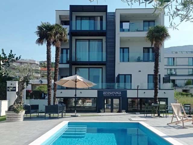 Das Beach Hotel Božikovina in Podstrana ist ein gemütliches und elegantes Hotel, das im Jahr 2023 renoviert wurde und höchsten europäischen Standards entspricht. Hier können Sie sich inmitten der entspannenden Landschaft von Podstrana erholen und neue Energie tanken. Die geräumigen und komfortablen Zimmer sind modern ausgestattet und verfügen über kostenfreies WLAN. Genießen Sie ein abwechslungsreiches kontinentales Frühstück, entspannen Sie am Außenpool und lassen Sie sich von unserem Wellnessangebot verwöhnen. Kostenlose Parkplätze und ein Flughafen- und Touren-Shuttle stehen ebenfalls zur Verfügung. Erleben Sie einen unvergesslichen Aufenthalt im Beach Hotel Božikovina!
