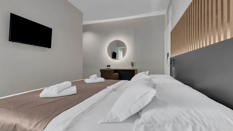 Die Zimmer im Beach Hotel Božikovina sind gemütlich, aber elegant eingerichtet und bieten Ihnen einen komfortablen Rückzugsort. Die großzügigen Fenster lassen viel Tageslicht herein und schaffen eine helle und einladende Atmosphäre. Die Zimmer sind modern ausgestattet und verfügen über kostenfreies WLAN, damit Sie immer mit der Welt verbunden bleiben können.