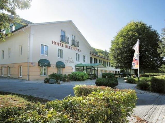 Das Hotel Beethoven liegt in Hinterbrühl im Wienerwald, einer ruhigen Gegend, die nur 10 Autominuten von der Wiener Stadtgrenze entfernt ist. Die nächste Bushaltestelle befindet sich nur 2 Gehminuten entfernt und bietet Verbindungen zum Bahnhof Mödling, von wo aus Wien in etwa 15 Minuten erreichbar ist. Das Schloss Schönbrunn ist in etwa 15 Autominuten zu erreichen, während der Flughafen Wien 25 Minuten entfernt liegt. Die Einkaufszentren Shopping City Süd und die Weinbaustadt Gumpoldskirchen befinden sich jeweils in 8 km Entfernung. Fünf Golfplätze sind innerhalb einer Reichweite von 4 bis 25 km vorhanden.