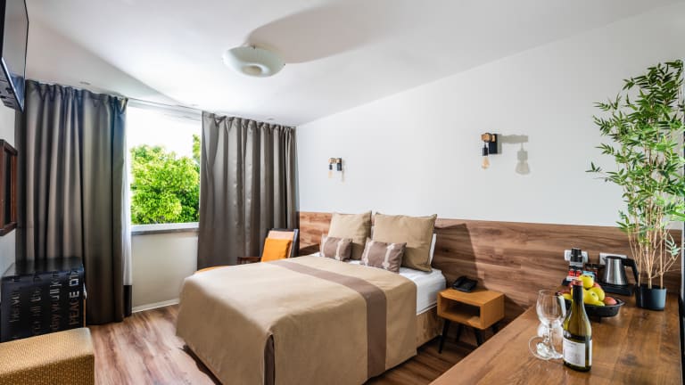 Das Hotel Beit Maimon im Carmel-Gebirge bietet eine idyllische Lage mit Panoramablick auf das Tal und das Mittelmeer. Hier können Sie eine natürliche Umgebung und eine entspannte Atmosphäre genießen. Das Hotel verfügt über kostenfreie Parkplätze, einen großen Garten und einen Whirlpool mit Blick auf die malerische Umgebung. Das hoteleigene Restaurant und der Tagungsraum bieten ebenfalls einen atemberaubenden Ausblick. Die geräumigen und hellen Zimmer sind mit einem LCD-TV und WLAN ausgestattet. In der Altstadt von Zichron Yaakov, die nur 10 Gehminuten entfernt ist, finden Sie eine Vielzahl von Geschäften, Galerien und Cafés. Beachten Sie bitte, dass bei einer Buchung von 5 Zimmern oder mehr abweichende Hotelrichtlinien und zusätzliche Aufpreise gelten können.