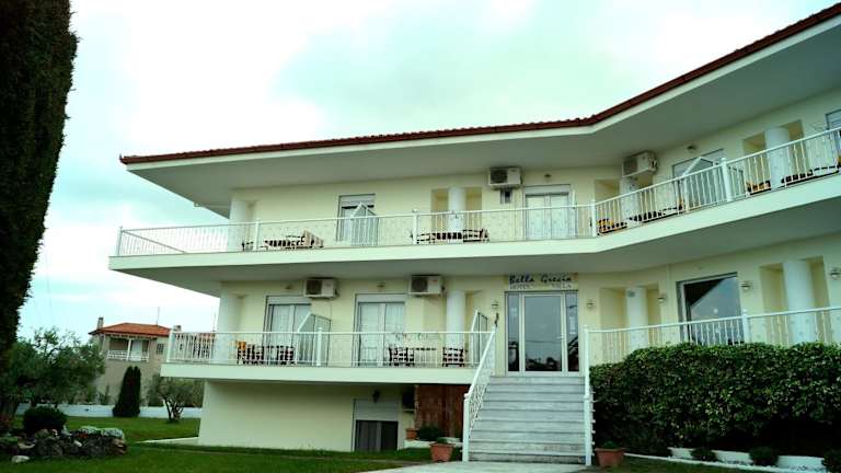 Das Bella Grecia befindet sich auf der Halbinsel Chalkidiki zwischen den Ortschaften Chanioti und Polichrono. Der Strand ist nur 150 m entfernt und lädt zum Entspannen und Sonnenbaden ein. In der Umgebung finden Sie eine Vielzahl von Geschäften, Restaurants und Bars, die zu einem Bummel einladen. Thessaloniki und der Flughafen Thessaloniki sind etwa eine Stunde Autofahrt entfernt.