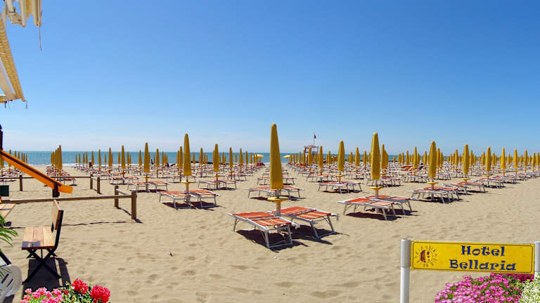 Das Hotel Bellaria liegt in Lido di Jesolo, nur 150 m vom Strand entfernt. Es befindet sich in der belebten Fußgängerzone Via Bafile, die von Geschäften und Restaurants umgeben ist. Die Lage des Hotels ermöglicht es den Gästen, das lebhafte Treiben der Stadt zu genießen und gleichzeitig die Nähe zum Strand zu schätzen. In der Umgebung gibt es zahlreiche Einkaufs- und Unterhaltungsmöglichkeiten.