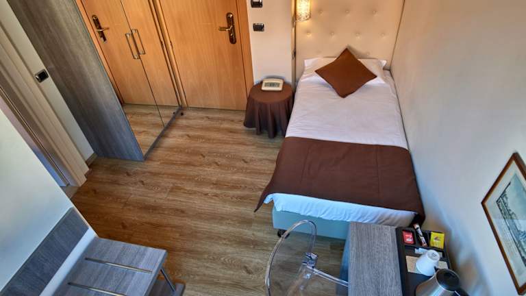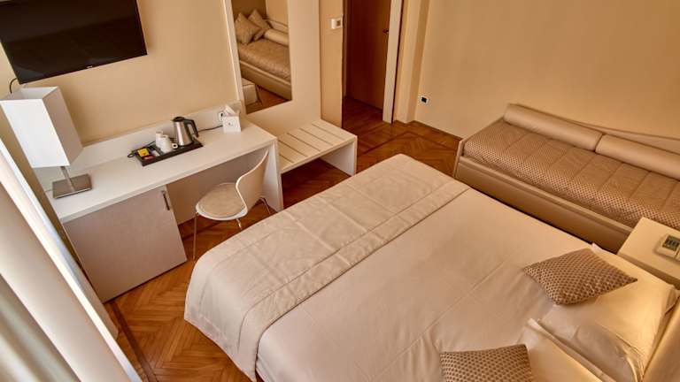 Das Hotel Bellavista verfügt über 40 klassisch eingerichtete Zimmer, die über einen Aufzug erreichbar sind. Alle Zimmer sind mit einem eigenen Bad ausgestattet und einige bieten einen Balkon mit zusätzlichem Platz zum Entspannen. Zur Ausstattung gehören auch eine Klimaanlage, eine Heizung, ein Safe, eine Minibar und ein Schreibtisch. Für Unterhaltungsmöglichkeiten stehen ein Telefon, Sat-TV und kostenloses WLAN zur Verfügung. Die Badezimmer verfügen über eine Dusche, eine Badewanne, ein Bidet und einen Haartrockner.