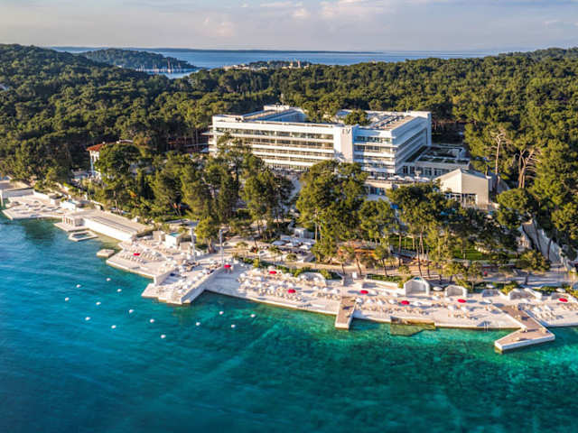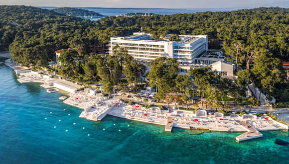 Für viele ist es überhaupt das schönste Fenster zur Adria: das BELLEVUE scheint über der Čikat-Bucht zu schweben. Hier bekommen die wertvollsten Tage des Jahres VIP-Format. Suiten mit Terrassen öffnen sich zum Meer, und der eigene Jacuzzi ladet ein, den Sonnenuntergang einmal anders zu genießen. Das großzügig offene Atrium des BELLEVUE: ein faszinierendes Spiel mit klaren, schlichten Linien, gültigem Design und raffiniertem Umgang mit Licht. Im einmaligen Spa Garden wirken Licht, Luft, Sonne und Wasser mit den Aromen mediterraner Kräuter zusammen. Und eine genussvolle Massage im Heilklima des Gartens mag vielleicht den Auftakt bilden, sich in der Bellevue Spa Clinic nach Herzenslust verwöhnen zu lassen. Der bekömmliche Genuss des schöneren Lebens setzt sich fort in der dezenten Opulenz, die das BELLEVUE in Küche und Keller aufwartet. In Würde gealtert sind nur unsere Weine, alles andere kommt frisch und in erlesener Qualität aus dem Meer, aus dem eigenen Gewürzgarten, von den Landwirten unseres Vertrauens. Stilvoll genossen à la carte oder in unseren lauschigen Bars und Lounges.