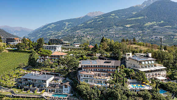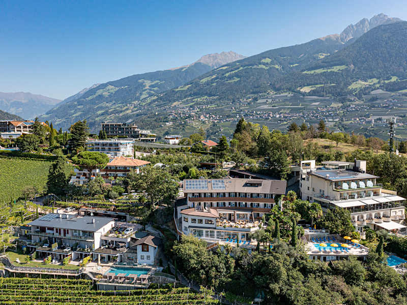 Unser familiengeführtes Hotel in einer Panoramalage inmitten von Apfelbäumen und Weinbergen in Dorf Tirol oberhalb von Meran lädt zum Wandern und Genießen ein. Wir bieten unseren Gästen 2 Freibäder und ein Hallenbad. Inmitten unserer wunderschön gepflegten Gartenanlage befindet sich ein überdachtes Whirlpool sowie eine Panoramaterrasse mit herrlichem Ausblick. Unsere Hotelanlage besteht aus dem Haupthaus Bellevue und unserer Dependance, direkt angrenzend. Wir liegen direkt an der Bushaltestelle bzw. am Sessellift, wodurch wir ein idealer Ausgangspunkt für alle Freizeitaktivitäten sind. Unseren Gästen steht kostenlos W-Lan und ein überdachter Parkplatz zur Verfügung.