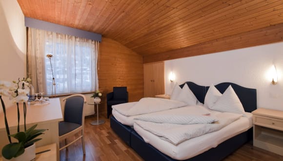 Zwei verschiedene Restaurants mit lokalen Spezialitäten und internationaler Küche. Im Winter zusätzliche uriges Kellerlokal "Caverna" mit Steakspezialitäten vom Holzkohlengrill und Fleischfonduespezialitäten.