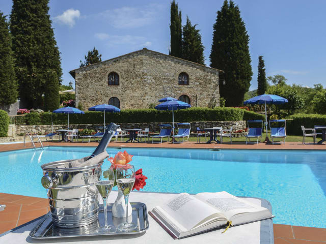 Das Hotel Belvedere Di San Leonino in Castellina in Chianti ist ein charmantes historisches Landhaus, das von Weinbergen umgeben ist und den perfekten Ausgangspunkt für Ihren Aufenthalt in der Region Chianti bietet. Hier können Sie den toskanischen Stil in den Zimmern, die herrliche Aussicht auf die umliegende Landschaft und die köstliche toskanische Küche im hoteleigenen Restaurant genießen. Entspannen Sie am großen Außenpool und nehmen Sie an einer kostenfreien Weinprobe teil, um die Weine der Region kennenzulernen.