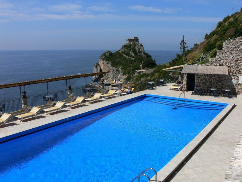Das Hotel Belvedere bietet einen privaten Felsenstrand, zu dem Sie über eine Steintreppe gelangen. Hier können Sie die Sonne genießen und im kristallklaren Wasser des Mittelmeers schwimmen. Der Meerwasserpool des Hotels befindet sich auf einer Terrasse zwischen dem Hotel und dem Meer und bietet eine herrliche Aussicht. Nutzen Sie die Gelegenheit, sich zu entspannen und die Schönheit der Amalfiküste in vollen Zügen zu genießen.