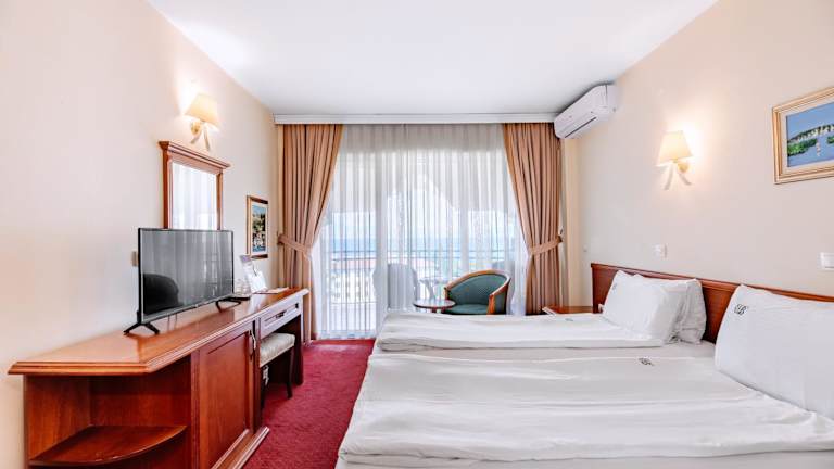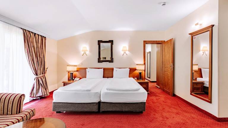 Die Zimmer im Hotel Belvedere sind klimatisiert, geräumig und elegant eingerichtet. Sie bieten den perfekten Rückzugsort für einen erholsamen Aufenthalt. Genießen Sie den Komfort und die Annehmlichkeiten, die Ihnen in Ihrem Zimmer geboten werden.