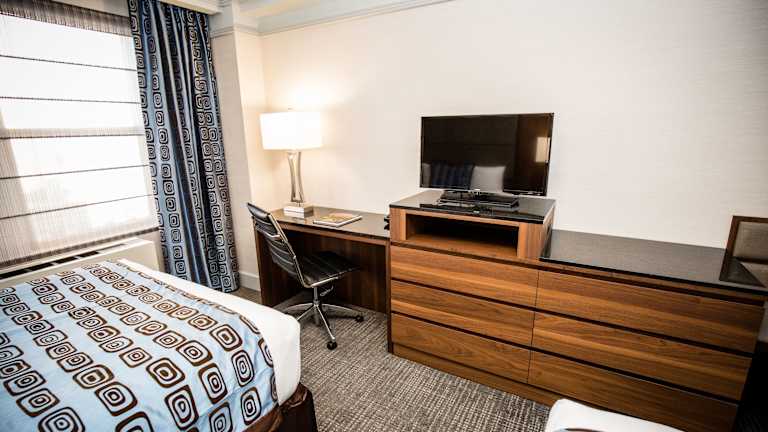 Die Zimmer sind mit Klimaanlage und Heizung ausgestattet und verfügen über Teppichböden. Zur Einrichtung gehören ein Doppelbett, Safe, Minibar, Schreibtisch und eine Kochnische mit Kühlschrank, Mikrowelle sowie einer Tee-/Kaffeemaschine. Fernseher mit Satelliten-/Kabelempfang, Telefon, WLAN und ein Badezimmer mit Dusche und Badewanne sind ebenfalls vorhanden. Rollstuhlgerechte Zimmer sind verfügbar.