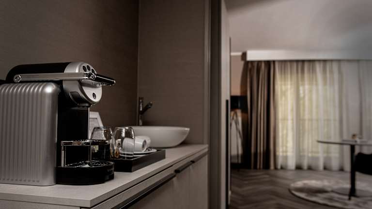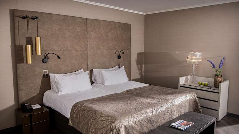 In den Zimmern ist eine Klimaanlage sowie eine Heizung vorhanden. Die meisten Zimmer verfügen über einen Balkon, ein Doppelbett, einen Safe und eine Minibar. Zusätzlich sind ein Schreibtisch, ein Minikühlschrank, eine Tee-/Kaffeemaschine, ein Telefon, ein TV-Gerät und kostenloses WLAN verfügbar. Die Badezimmer sind mit Dusche und Badewanne ausgestattet und bieten Bademäntel, Hausschuhe sowie Kosmetikartikel. Barrierefreie Zimmer stehen ebenfalls zur Verfügung.