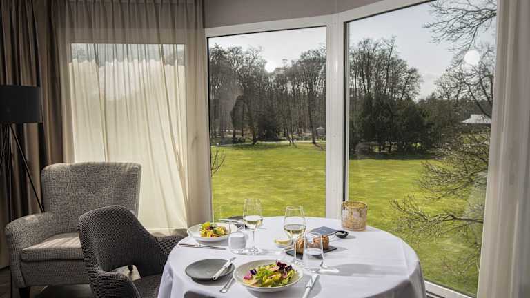 Die gastronomischen Einrichtungen umfassen ein Restaurant, ein Speiseraum, ein Café und eine Bar. Die Unterkunft bietet Halbpension an, die Frühstück, Mittagessen und Abendessen umfasst. Besonderheiten wie Diät- und Kindermenüs sowie spezielle Verpflegungsangebote sind auf Anfrage erhältlich. Das Frühstück wird in Buffetform serviert, während das Restaurant moderne französische und niederländische Küche mit saisonalen, lokalen Zutaten präsentiert.