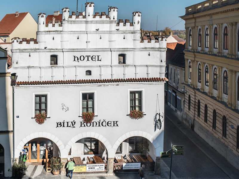 Das Hotel Bílý Koníček in Třeboň ist der ideale Ort für einen Aufenthalt in einem charmanten Renaissance-Gebäude aus dem 16. Jahrhundert. Die zweckmäßig eingerichteten Zimmer bieten allen Komfort, den Sie für einen angenehmen Aufenthalt benötigen. Genießen Sie regionale Küche im hoteleigenen Restaurant und probieren Sie bekannte regionale Biere an der Bar. Die Umgebung bietet viele Möglichkeiten zum Entspannen und Aktivsein, sei es im nahegelegenen Park, bei Wanderungen oder Radtouren entlang der zahlreichen Radwege. Entdecken Sie auch die schönen Seen und Weiher in der Umgebung. Die Städte Budweis und Hluboká nad Vltavou sind ebenfalls einen Besuch wert und gut erreichbar.