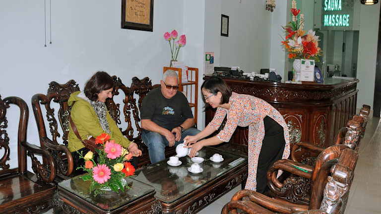 Die Zimmer im Thai Binh II Hotel sind gut ausgestattet und verfügen über einen eigenen Balkon, von dem aus Sie die Aussicht auf den Fluss Huong genießen können. Jedes Zimmer ist klimatisiert und verfügt über eine Minibar sowie ein eigenes Badezimmer mit Badewanne. Holzböden und ein gemütlicher Sitzbereich sorgen für zusätzlichen Komfort während Ihres Aufenthalts.