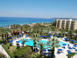 Das Hotel befindet sich in Ialyssos, direkt am Sand- und Kiesstrand. Der öffentliche Strandbereich ist nur wenige Schritte entfernt und bietet Liegestühle sowie Sonnenschirme gegen Gebühr. Ialyssos liegt etwa 8 km vom Stadtzentrum von Rhodos entfernt und ca. 7 km vom Flughafen Diagoras International Airport. Die nächste Bushaltestelle ist nur 50 m entfernt, wodurch die Erreichbarkeit von umliegenden Orten erleichtert wird.
