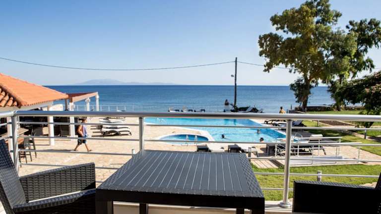 Die Unterkünfte im Blue Waves Hotel sind komfortabel und stilvoll eingerichtet. Jedes Zimmer verfügt über einen Balkon mit Blick auf das Meer, auf dem Sie die frische Meeresbrise genießen können. Die Zimmer sind klimatisiert und mit einem Smart-TV ausgestattet, damit Sie Ihre Lieblingssendungen auch im Urlaub nicht verpassen. Die voll ausgestattete Küche bietet Ihnen die Möglichkeit, Ihre eigenen Mahlzeiten zuzubereiten, und das eigene Badezimmer ist mit einer Dusche ausgestattet.