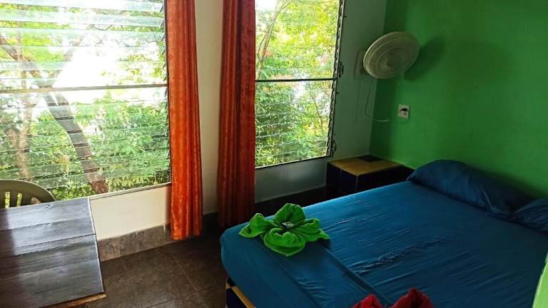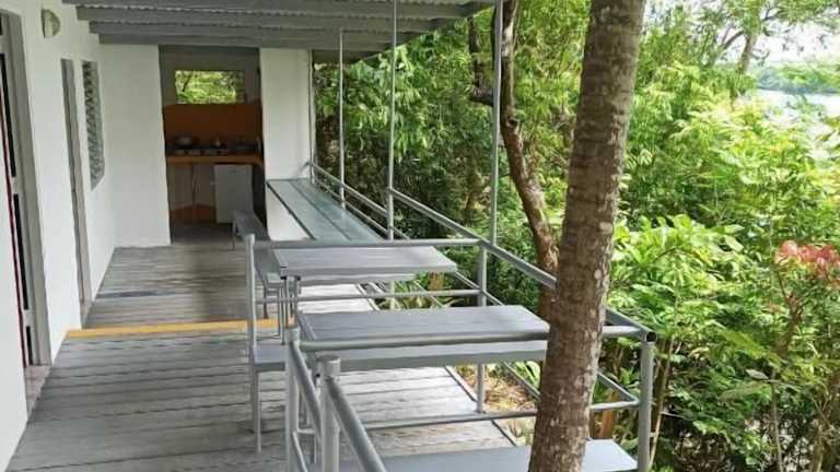 Das Hotel ist nur mit dem Boot von Boca Chica aus zu erreichen. Es führen sehr viele und steile Treppen vom Meer hinauf zum Hotel. Die Anlage ist sehr schön, am Morgen hört man die Brüllaffen und kann sie auch gut mit blossem Auge sehen. Die Zimmer sind gross, was etwas störend ist, sind die Etagenbetten. Das Bad ist einfach gehalten. Es gibt einen kleinen Balkon. Am Abend kann man dort noch die Natur geniessen. Das Essen schmeckt sehr gut, es könnte ein bisschen mehr sein, also das sind keine panamesischen…
