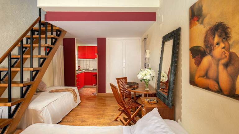 Die Bollo Apartments befinden sich in einem historischen Gebäude im Herzen von Rom. Die Lage ist ideal, um die Stadt zu erkunden, da viele Sehenswürdigkeiten wie die Piazza Navona und das Viertel Trastevere nur wenige Gehminuten entfernt sind. In der Nähe finden Sie auch den berühmten Campo de' Fiori, der für seine Bars und Restaurants bekannt ist. Die Umgebung bietet eine Fülle an Möglichkeiten, um das historische Rom zu entdecken und das pulsierende Stadtleben zu genießen.