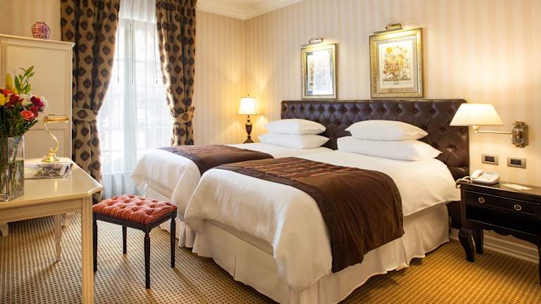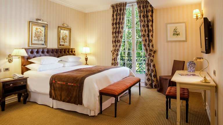 In den Zimmern gibt es eine individuell steuerbare Klimaanlage und Heizung. Die meisten Zimmer sind mit einem Balkon ausgestattet. Zur Einrichtung gehören ein Doppelbett oder Kingsize-Bett, ein Safe, eine Minibar und ein Schreibtisch. Einige Zimmer verfügen über einen Minikühlschrank und eine Tee-/Kaffeemaschine sowie einen Fernseher mit Satelliten- und Kabelempfang. Die Badezimmer sind mit einer Dusche und einer Badewanne ausgestattet, außerdem stehen ein Haartrockner, Bademäntel und Kosmetikartikel zur Verfügung. Es sind sowohl Nichtraucherzimmer als auch Familienzimmer buchbar.