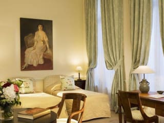 61 chambres, entre 180 € et 340 € Le salon, la salle des petits déjeuners et toutes les chambres ont fait l'objet d'une restauration raffinée, sous le signe de "l'esprit des lieux", du confort, de l'élégance et de la qualité. Les tableaux, les tissus chatoyants, les meubles de style, l'harmonie des tons créent le décor, respectent "l'esprit des lieux"...
