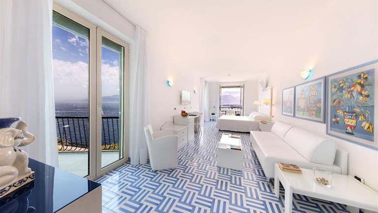 Das Hotel befindet sich in einer Panoramalage oberhalb von Sorrent und bietet einen atemberaubenden Blick auf die Bucht von Neapel. Das Stadtzentrum und öffentliche Verkehrsmittel sind in der Nähe und können bequem erreicht werden.