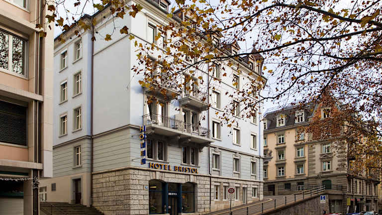 Das Hotel Bristol Zürich liegt nur 5 Gehminuten vom Hauptbahnhof Zürich und der Universität ETH Zürich entfernt und bietet eine ruhige Lage im Zentrum der Stadt. In unmittelbarer Nähe finden Sie zahlreiche Geschäfte, Restaurants und öffentliche Verkehrsmittel, die es Ihnen ermöglichen, die Stadt bequem zu erkunden. Der Zürichsee mit seiner schönen Promenade ist etwa 2 km entfernt und lädt zu einem entspannten Spaziergang ein.
