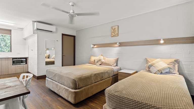 Die Unterkünfte im Broome Time Resort Cable Beach sind zur Selbstverpflegung geeignet und bieten komfortable Annehmlichkeiten für einen angenehmen Aufenthalt. Jedes Zimmer verfügt über eine komplett ausgestattete Küche mit einem Umluftbackofen/Mikrowelle und einem großen Kühlschrank. Ein Flachbild-TV und ein DVD-Player sorgen für Unterhaltung und kostenfreies WLAN steht zur Verfügung. Die klimatisierten Zimmer verfügen zudem über ein eigenes Bad.