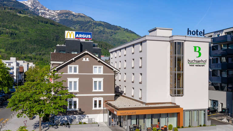 Das Hotel Buchserhof liegt nur 200 m vom Bahnhof Buchs und der Haupteinkaufsstraße entfernt. Die zentrale Lage ermöglicht es Ihnen, bequem die Umgebung zu erkunden und die nahegelegenen Geschäfte und Restaurants zu besuchen.