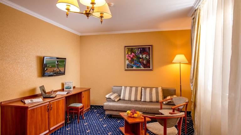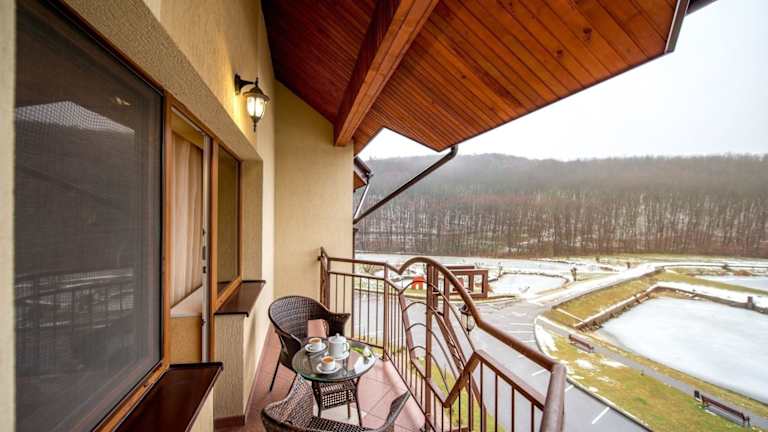Die Zimmer, Suiten und Apartments im Buhta Vikingiv Hotel sind schallisoliert und bieten eine komfortable und gemütliche Unterkunft. Jede Unterkunft verfügt über einen Balkon, auf dem Sie die Aussicht auf die schöne Umgebung genießen können. Zur weiteren Ausstattung gehören ein Fernseher und ein modernes Badezimmer.