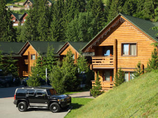 Das Bukovel Hotel befindet sich im Herzen von Bukovel und ist von 53 km Skipisten umgeben. Die Lage ist ideal für alle, die gerne Skifahren und die Natur genießen möchten. In der Umgebung gibt es zahlreiche Geschäfte, in denen Sie eine Skiausrüstung mieten können. Der Flughafen Ivano-Frankiwsk ist etwa 100 km entfernt und das Hotel bietet einen Shuttleservice dorthin an.