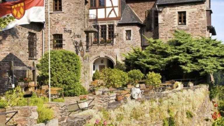Das Hotel Burg Arras liegt in dem charmanten Dorf Alf und ist von der malerischen Landschaft der Mosel umgeben. In der Nähe gibt es viele Sehenswürdigkeiten wie die Reichsburg Cochem, die nur 27 km entfernt liegt. Die Umgebung bietet auch zahlreiche Möglichkeiten zum Radfahren und erkunden der Natur. Der Flughafen Frankfurt-Hahn ist mit dem Auto in kurzer Zeit erreichbar.