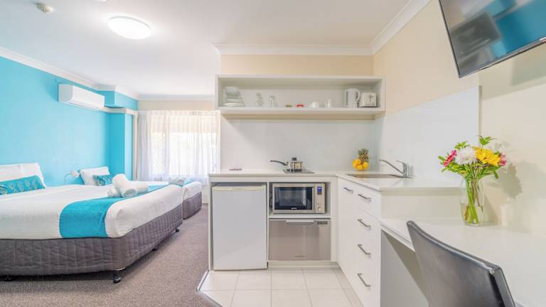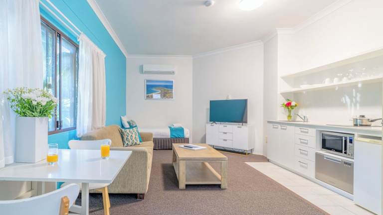 Die Studio-Apartments im Byron Bayside Central bieten Ihnen eine gemütliche Unterkunft mit eigenem Bad und einem Wohnbereich mit Flachbild-TV. Die meisten Unterkünfte verfügen zudem über große sonnige Balkone, auf denen Sie die warme Sonne und die frische Meeresluft genießen können. Für zusätzlichen Komfort gibt es eine voll ausgestattete Küche und eine Wäscherei. Kostenfreies WLAN und kostenlose Parkplätze stehen ebenfalls zur Verfügung.