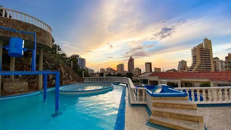 Die Villa Roca liegt in Rodadero, einem beliebten Viertel von Santa Marta. Sie befindet sich in der Nähe des wunderschönen Strandes El Rodadero und des Strandes Salguero. Die Umgebung bietet zahlreiche Freizeitmöglichkeiten wie Schwimmen, Sonnenbaden und Wassersport. Der internationale Flughafen Simón Bolívar ist nur 10 km entfernt, was die Anreise sehr bequem macht.