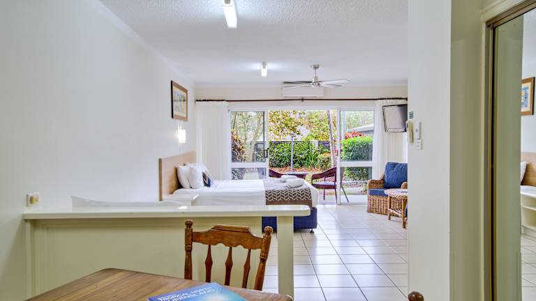 Das Hotel bietet geräumige Hotelzimmer und Apartments, die jeweils über einen eigenen möblierten Balkon verfügen. Die Apartments sind entweder im traditionellen Queenslander-Stil oder in einem modernen Design gestaltet. Alle Zimmer sind mit Klimaanlage, Ventilator, Kingsize-Bett, Schreibtisch, Kochnische mit Kühlschrank, Mikrowelle und Tee-/Kaffeemaschine sowie einem Badezimmer mit Dusche oder Badewanne und Haartrockner ausgestattet. Kostenloses WLAN ist in allen Zimmern verfügbar.
