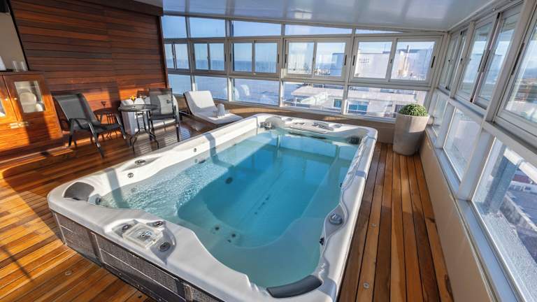 Das Cala di Volpe Boutique Hotel in Montevideo bietet einen luxuriösen Aufenthalt mit Meerblick von jedem Zimmer. Genießen Sie die entspannte Atmosphäre und den Komfort des Hotels, das einen Panorama-Fitnessraum mit Sauna und eine Hydromassage-Badewanne im Freien bietet. Lassen Sie sich mit einer Massage verwöhnen und bleiben Sie mit kostenlosem WLAN immer verbunden. Das Hotel beeindruckt mit einer großzügigen Lobby, elegantem Mobiliar und stilvollen Details. Die Zimmer sind klimatisiert und verfügen über Teppichboden, filigrane Tapetenmuster, bequeme Sitzgelegenheiten, dunkle Holzmöbel, einen Flachbild-TV, ein Sofa und eine Minibar. Starten Sie jeden Tag mit einem reichhaltigen Frühstücksbuffet und genießen Sie ein Abendessen à la carte mit Blick auf das Meer im Restaurant Azzurro. Das Cala di Volpe Boutique Hotel befindet sich in einer fantastischen Lage, nur wenige Häuserblocks vom See im Rodo-Park und dem Golfclub entfernt. Leihfahrräder stehen Ihnen kostenfrei zur Verfügung und eine Autovermietung ist ebenfalls vorhanden.