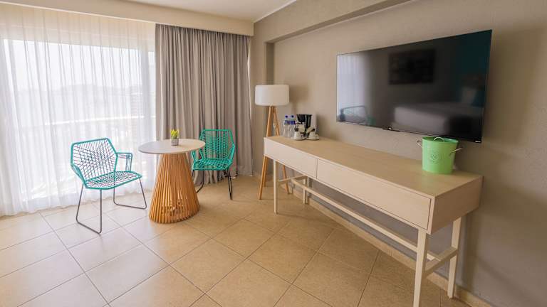 Die Zimmer sind mit Klimaanlage, einem Doppelbett, Safe, Minibar, Kühlschrank, Tee-/Kaffeemaschine sowie einem TV ausgestattet. Balkon oder Terrasse bieten einen Blick auf die Umgebung. Das Badezimmer verfügt über Dusche und Badewanne sowie einen Haartrockner. Rollstuhlgerechte Zimmer und Familienzimmer sind buchbar.