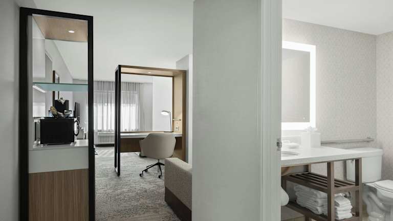 Die Zimmer im Cambria Hotel Ft Collins sind wunderschön eingerichtet und bieten geräumige und komfortable Unterkünfte. Jedes Zimmer verfügt über luxuriöse Betten, 2 Flachbild-LCD-TVs, CD-/DVD-Player, schnurlose Lautsprecher, Mikrowellen und Kühlschränke. Die Badezimmer sind elegant gestaltet und mit hochwertigen Pflegeprodukten von Bath and Body Works ausgestattet. Für Geschäftsreisende stehen Plug-and-Play-Technologien zur Verfügung, um ihre elektronischen Geräte wie MP3-Player, Spielekonsolen und digitale Kameras anzuschließen.
