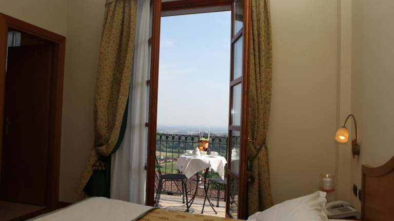 Das Hotel Camoretti liegt auf einem Hügel in Almenno San Bartolomeo und ist von grünen Hügeln und wunderschöner Natur umgeben. Von hier aus haben Sie eine atemberaubende Aussicht auf das Tal von Bergamo. Die Stadt Bergamo ist nur 15 km entfernt und der Golfclub Bergamo L'Albenza ist nur 5 km vom Hotel entfernt. Die Lage bietet somit eine perfekte Kombination aus Ruhe und Naturverbundenheit sowie Nähe zu interessanten Ausflugszielen.