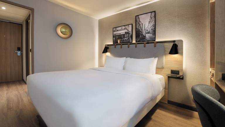 Das Hotel verfügt über 49 Nichtraucherzimmer, die ein ansprechendes Ambiente bieten. Jedes Zimmer ist klimatisiert und verfügt über individuell steuerbare Heizung. Zur Ausstattung gehören ein Doppelbett, ein Schreibtisch, eine Tee-/Kaffeemaschine, ein Telefon mit Direktwahl, ein TV-Gerät mit Satelliten-/Kabelempfang und kostenfreies WLAN. Im Badezimmer finden Sie eine Dusche oder eine Badewanne, einen Haartrockner und kostenlose Kosmetikartikel. Rollstuhlgerechte Zimmer mit barrierefreiem Badezimmer sind ebenfalls verfügbar.