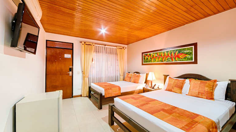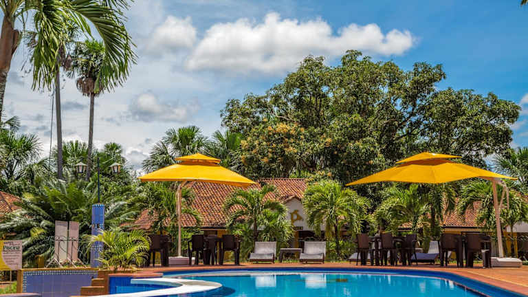 Das Hotel Campestre La Potra ist die perfekte Unterkunft für Ihren Aufenthalt in Villavicencio. Hier können Sie die großzügigen Außenbereiche mit 2 Pools genießen und gleichzeitig die Nähe zur Apiay Air Base und zur Stadt Villavicencio nutzen. Das Hotel bietet kostenfreies WLAN in den öffentlichen Bereichen sowie kostenlose Parkplätze. Die Zimmer sind komfortabel und klimatisiert, mit Fliesenböden und einfachem, aber gemütlichem Interieur. Sie verfügen über Sat-TV und eine Minibar, einige Zimmer bieten sogar einen Blick auf den See. Beginnen Sie Ihren Tag mit einem leckeren Frühstücksbuffet und genießen Sie regionale und internationale Gerichte im Hotelrestaurant, das den ganzen Tag geöffnet ist.