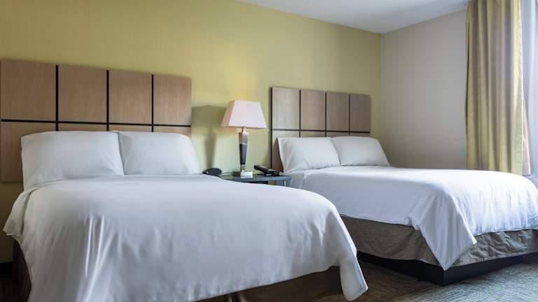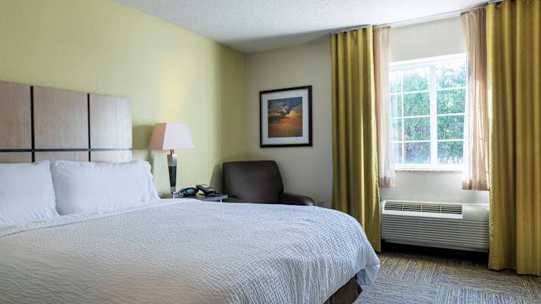 Die 82 Zimmer des Candlewood Suites Colonial Heights - Fort Lee sind traditionell eingerichtet und verfügen über eine voll ausgestattete Küche, in der Sie Ihre eigenen Mahlzeiten zubereiten können. Die Zimmer sind gemütlich und bieten hochwertige Bettwäsche für einen erholsamen Schlaf. Zur Ausstattung gehören auch ein Flachbild-Kabel-TV, ein Schreibtisch und Kaffee- und Teezubehör.