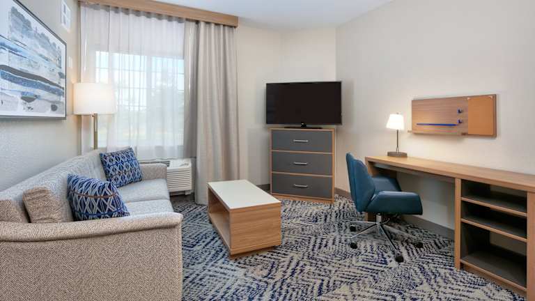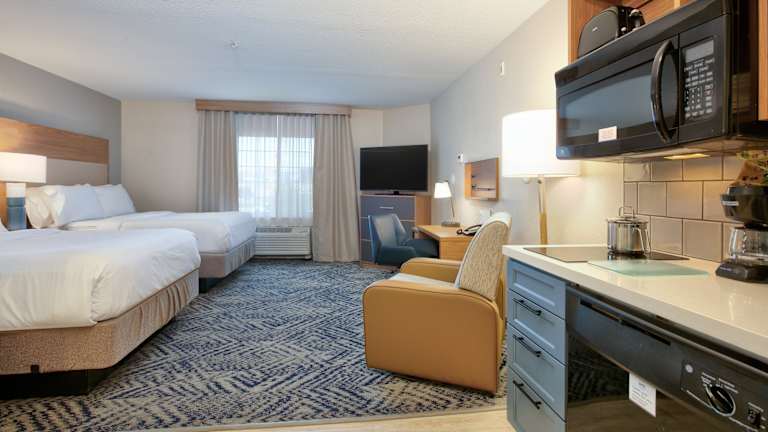 Die 81 Nichtraucherzimmer des Candlewood Suites Idaho Falls erstrecken sich über 4 Etagen und sind über einen Aufzug erreichbar. Jede Suite verfügt über eine voll ausgestattete Küche, ein Badezimmer und einen Balkon. Zur Ausstattung gehören auch ein Schreibtisch, ein Kühlschrank, ein Herd, eine Mikrowelle, eine Tee-/Kaffeemaschine und ein Geschirrspüler. Ein TV-Gerät mit Kabelempfang, ein DVD-Player und kostenloses WLAN sind ebenfalls vorhanden. Rollstuhlgerechte Zimmer sind auf Anfrage verfügbar.