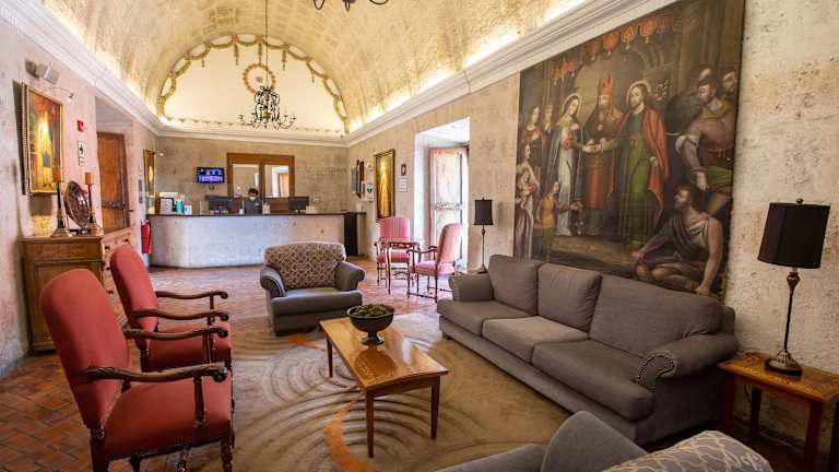 Das Casa Andina Premium Arequipa ist ein einzigartiges Hotel in einem 18. Jahrhundert Kolonialhaus aus vulkanischem Stein im Zentrum der Weißen Stadt. Die traditionell eingerichteten Zimmer bieten modernen Komfort wie LCD-TV und Tee- und Kaffeezubereitungsmöglichkeiten. Kostenloses WLAN ist im gesamten Hotel verfügbar. Genießen Sie den Blick auf die Kathedrale von Arequipa und den Vulkan El Misti von der Sonnenterrasse im vierten Stock aus. Das Alma Restaurante & Bar befindet sich im Hauptinnenhof und serviert peruanische Küche und lokale Spezialitäten aus Arequipa. Das Hotel liegt nur wenige Gehminuten vom Santa Catalina Kloster und der Plaza de Armas entfernt. Das Casa Andina Premium Arequipa ist 15 Autominuten vom Flughafen Rodríguez Ballón entfernt.