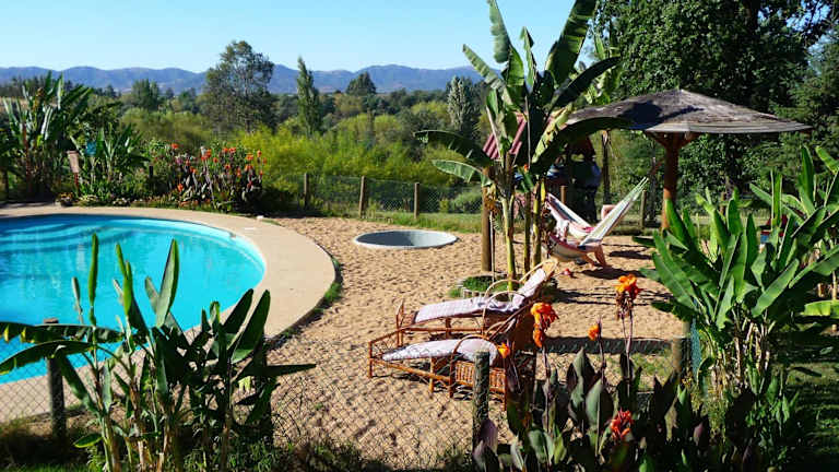 Das Casa Chueca - DiVino befindet sich auf einem insgesamt 7 ha großen Gelände, nur 20 Minuten von der renommierten Weinkellerei Balduzzi entfernt. In 60 km Entfernung erreichen Sie das beeindruckende Landschaftsschutzgebiet Reserva Nacional Altos del Lircay und der Nationalpark 7 Tazas ist 120 km entfernt. Der Flughafen Talca ist nur 3 km vom Hotel entfernt. Die Lage am Ufer des Flusses Rio Lircay und die umliegende Natur bieten eine malerische Kulisse für Ihren Aufenthalt.