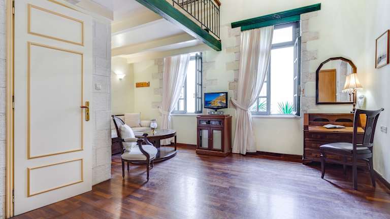 Das Hotel Casa Leone in Chania bietet seinen Gästen einen charmanten Aufenthalt mit antiken Möbeln, einer atemberaubenden Aussicht auf den venezianischen Hafen und den Leuchtturm Lighthouse Chania. Die Unterkunft ist voll klimatisiert und verfügt über eine Terrasse am Wasser. Die Zimmer und Suiten sind mit eleganten Kronleuchtern, Holzbalkendecken und Himmelbetten mit Musselin-Vorhängen ausgestattet. Jede Unterkunft bietet zudem Kaffee- und Teezubehör, einen LCD-Sat-TV und eine Sitzecke. Das traditionelle kretische Frühstück wird im klassischen Frühstücksraum serviert. Entspannen Sie auf der Sonnenterrasse oder im Innenhof mit einem eleganten Brunnen. Kostenloses WLAN steht in der Lobby zur Verfügung. Das Hotel bietet auch eine Autovermietung und Unterstützung bei der Ausflugsplanung. Der Flughafen Chania ist 17 km entfernt und der nächste Hafen ist 7 km entfernt. Der Strand sowie eine Taxi- und Bushaltestelle befinden sich in einer Entfernung von 500 m.