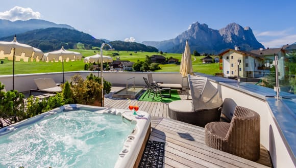 Das Castel Oswald von Wolkenstein lädt zu erholsamen Urlaubstagen ein. Lass Sie Ihre Seele baumeln auf der Dachterrasse im Whirlpool, beim Sonnenbaden oder wandern Sie direkt vom Castel aus in unsere wunderschöne Umgebung. Das Castel als Symphonie von stilvoller Eleganz, alpiner Gemütlichkeit und wertvoller Tradition lässt keine Wünsche offen. Erleben Sie in unserem gemütlichen Hotelambiente unvergessliche Tage der Erholung.
